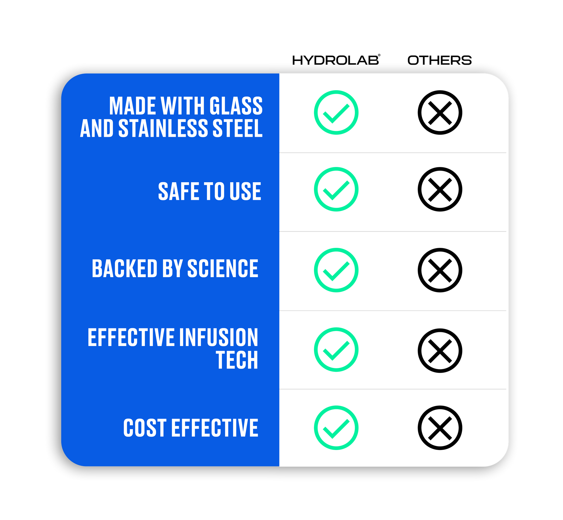 With the HydroLab®, we've successfully woven all the benefits of drinking hydrogen water into a bottle! We stand by our products and after rigorous testing, have built an efficient, effective and affordable option to start drinking hydrogenated water today! Find out why our stands out compared to all other general brands.